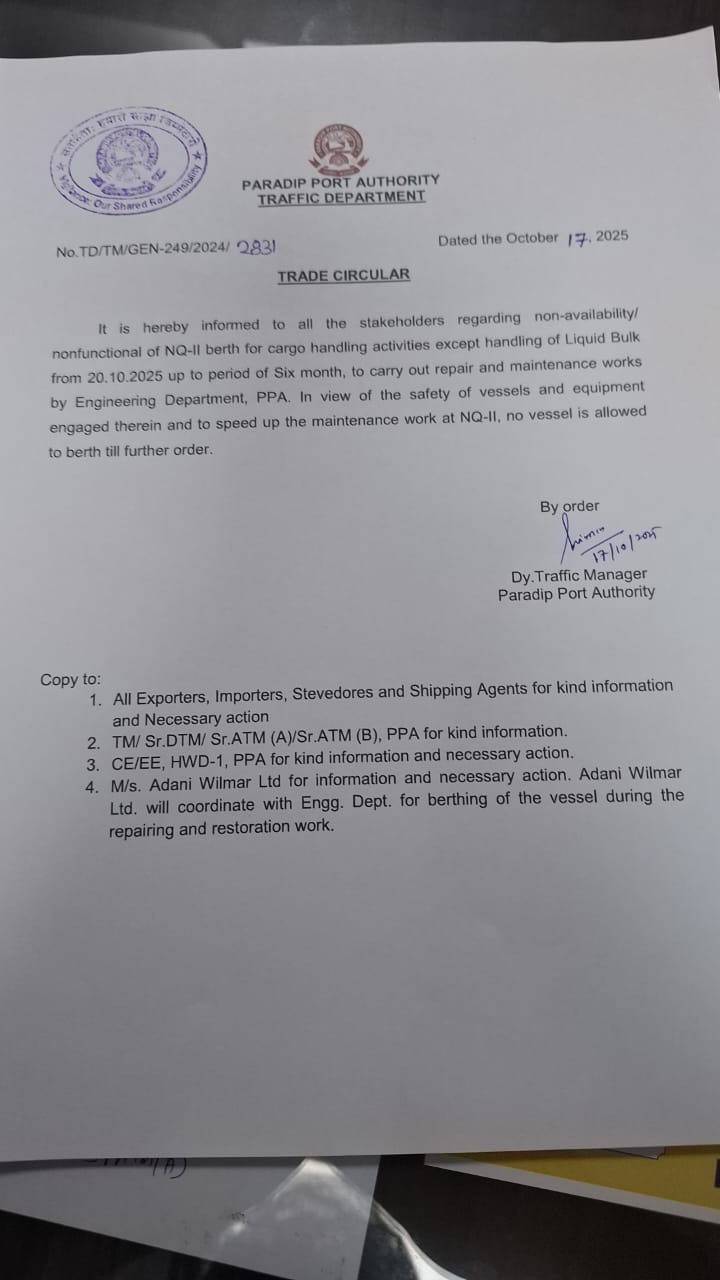 Shutdown of Liquid Cargo Berths- Intimation to Stakeholders |