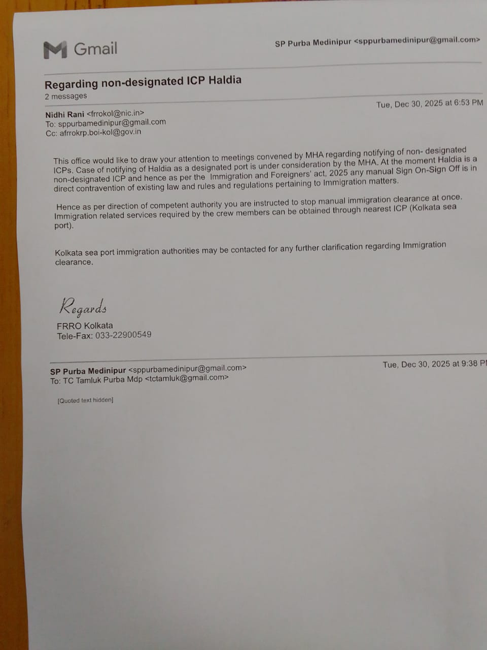 Discontinuation of Sign‑On/Sign‑Off and SLP of Crew for Indian‑Flag Coastal‑Run Vessels at Vizag Port |